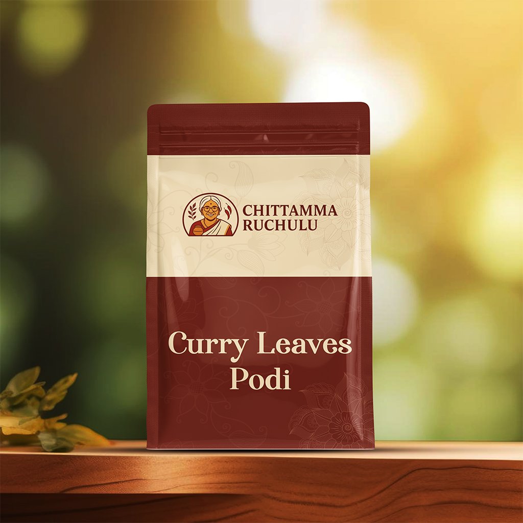 Ah, my dear, this Curry Leaves Podi (Karivepaku Podi) is full of health and home flavor! Made with sun-dried curry leaves, roasted dals, red chillies, garlic, and a pinch of tamarind, it’s aromatic, spicy, and full of goodness.